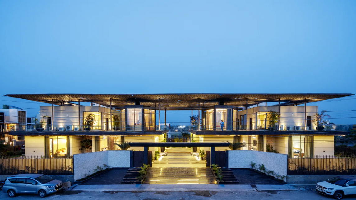 In a small township outside Karnal, Haryana, a palatial home for a joint family has created its own mini ecosystem. Designed by sustainability-focused firm Zero Energy Design (ZED) Lab, House Under Shadows was an experiment in reclaiming the earth in a manner that was eco-friendly, unobtrusive, and even beneficial to the natural flora and fauna of the area. “I still remember, when we first scouted the site, we weren’t able to stand there for even five minutes, we were so desperate for shade,” says Sachin Rastogi, one of the lead architects on the project. “The first thing that came to my mind was [that] we needed to create shade to create liveable conditions—and that’s where we got the idea of creating this canopy.”